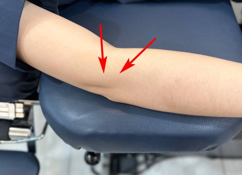 - 팔꿈치 바깥쪽 통증을 일으키는[테니스 엘보우]위 사진은 30대 여환으로1년 전부터노란색 화살표 친 부위의 뼈가 아프다고내원하셨습니다.테니스 엘보우 치료,어떻게 해야할까요?