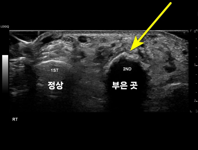 먼저 다치지 않은 정상쪽,좌측 동일 부위의 영상입니다.