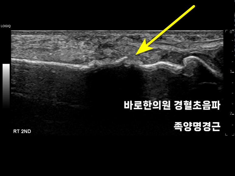 이제 다친 쪽,오른쪽 2번째 중족골을초음파로 검사해봤습니다.
