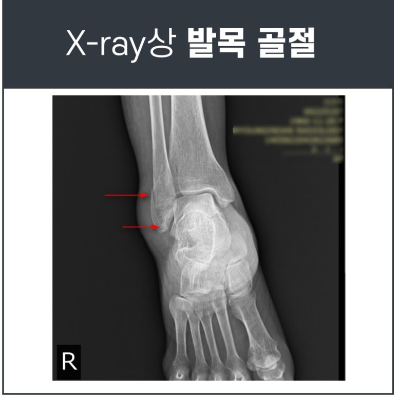꼼꼼하게 진찰해본 결과 발목의 비골 골절이 의심되어 정형외과로 보내 X-ray검사를 진행하였고 비골 골절로 최종 진단되었습니다.