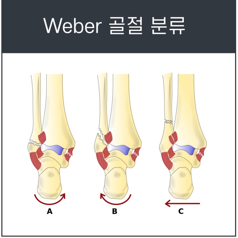 비골 골절은 Danis Weber라는 사람이 분류한 방법에 따라 3가지로 나뉩니다.