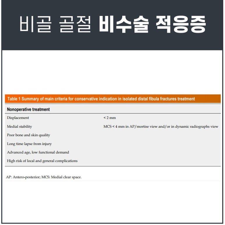비골 골절의 수술 적응증