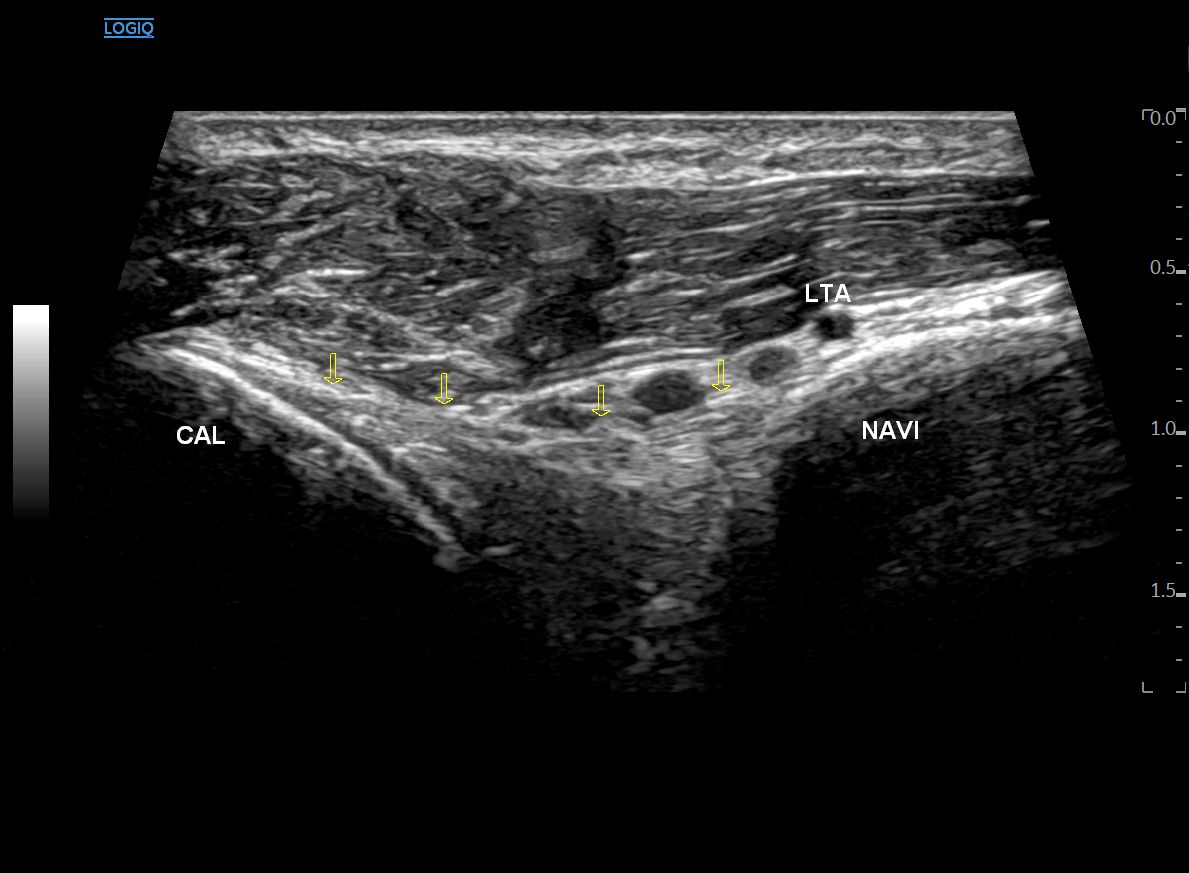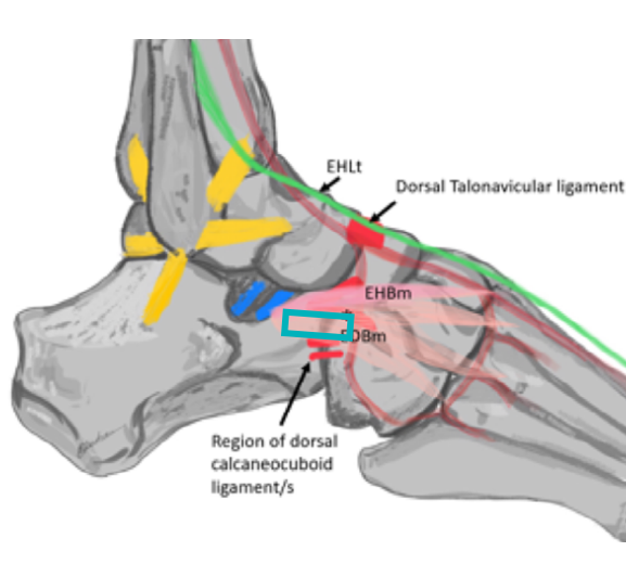 바깥 발목 동맥(LTA, Lateral tarsal artery)이 지나갑니다.