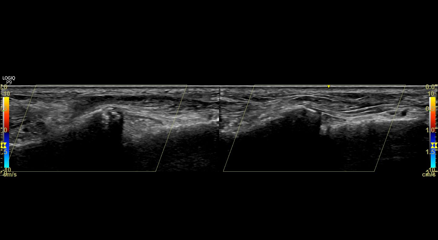 좌측 모식도 @ DOI: 10.1002/sono.12300 / 우측 초음파 영상은 직접 스캔했습니다