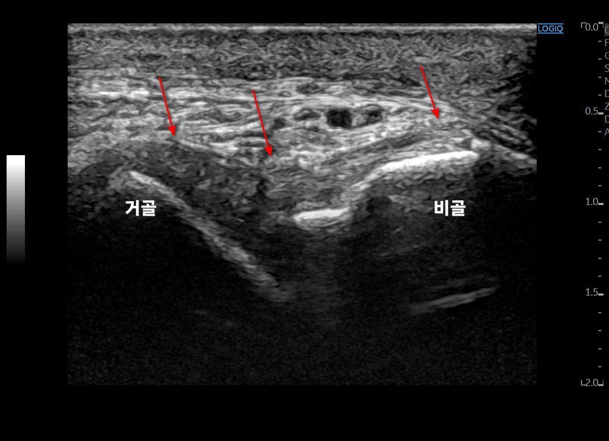 프로브를 주상골을 향해서 사선으로 돌립니다.