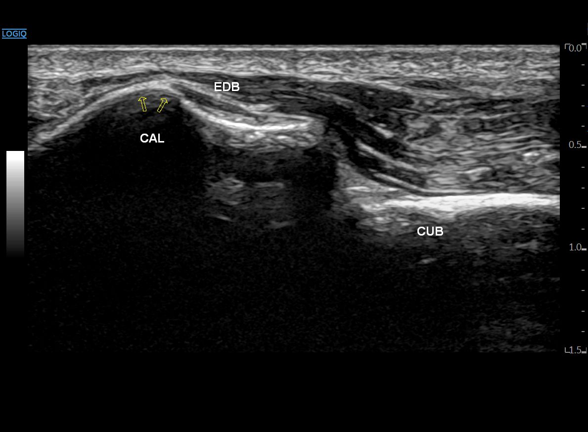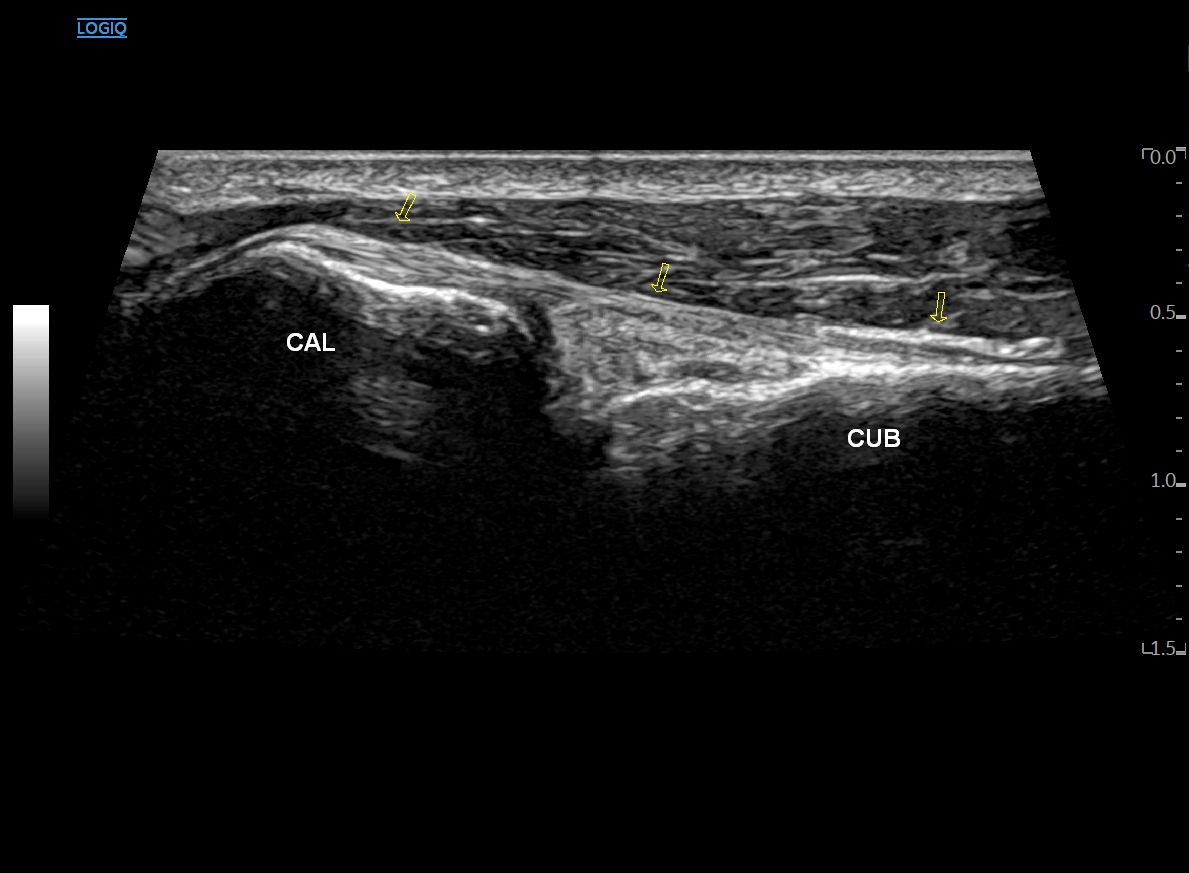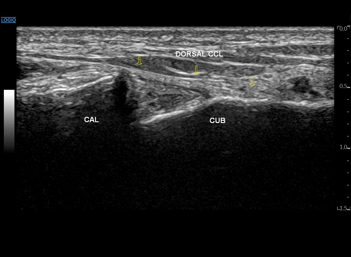 두 뼈를 연결하는 등쪽 종입방인대(Dorsal CCL)가 보이고요.