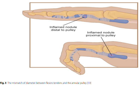 부어있는 활차로 인해 힘줄이 두꺼워지는게