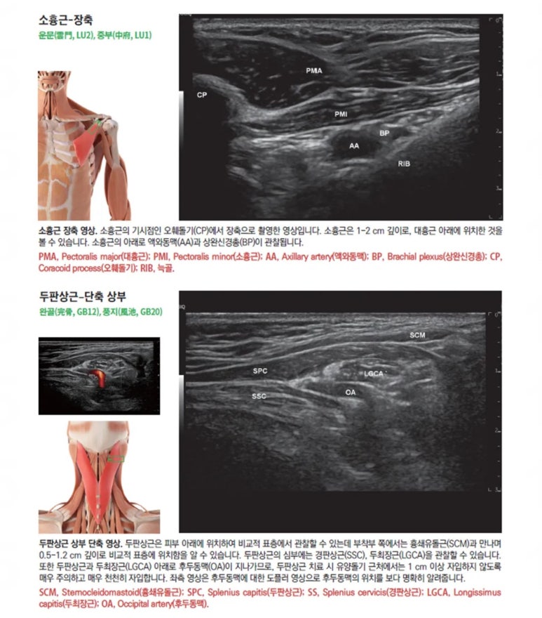 이와 관련 **윤상훈 원장(청연한의원)은 “근육의 아시혈에 침 치료를 할 때 가장 중요한 것은 경혈 해부학이며, 실제 임상에서 이 위치에 침을 놓으면 어떤 근육을 뚫게 되고, 그 주변엔 어떤 신경과 혈관이 있는지에 대해 아는 것이 정말 중요하다”며 “경혈 초음파야 말로 세세한 근육 주변의 단면을 정확하게 볼 수 있는 만큼 이번 개정판에 근육별 아시혈의 초음파 영상을 추가하게 됐다”고 밝혔다. 또한 **안태석 원장(바로한의원)은 “개정판에 게재된 초음파 이미지들은 GE 초음파의 최상위 기종인 Fortis를 활용해 경혈 초음파 영상을 촬영하여 깊이별로 근육층을 표기했다”며