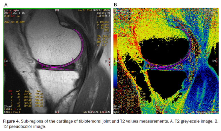 (경골 연골의 T2 Value 감소)