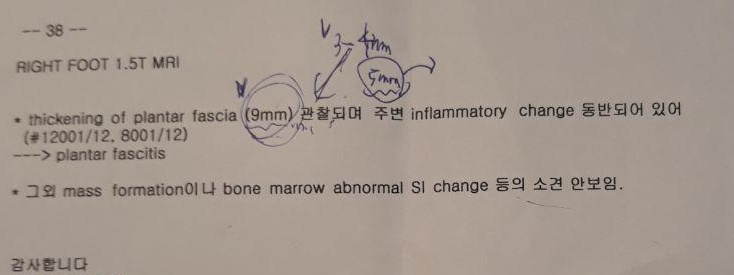영상의학과 전문의 선생님께서 족저근막염으로 진단하셨고