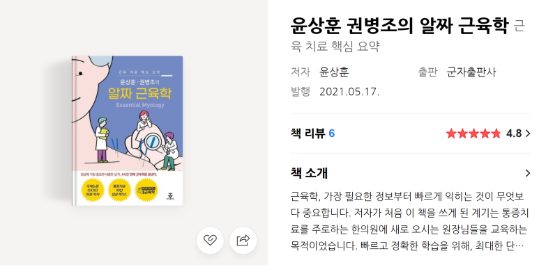 윤상훈, 권병조 원장님이 집필하셨던 '알짜 근육학' 초판은 메디스트림 3년 연속 판매 1위를 차지한 베스트셀러입니다.