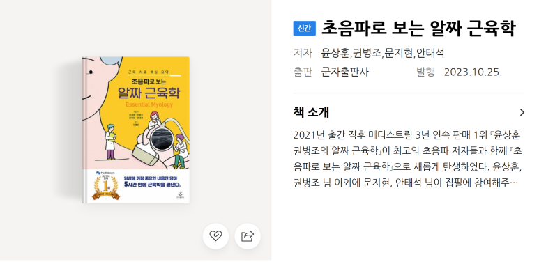 최근 보수교육에서 만난 윤 원장님이 개정판을 함께 써보자고 하셔서 공동 집필한 책이 바로 '초음파로 보는 알짜 근육학'입니다.