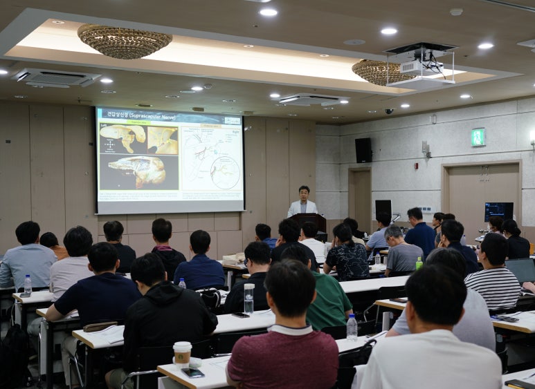 오 부회장은 오구돌기 부착부의 오구상완인대(Coracohumeral Ligament, CHL)가 자주 유착되는 수태음경근 아시혈 부위에 대해 초음파 가이드로 정밀하게 시술해 참가자들의 큰 호응을 얻었다.