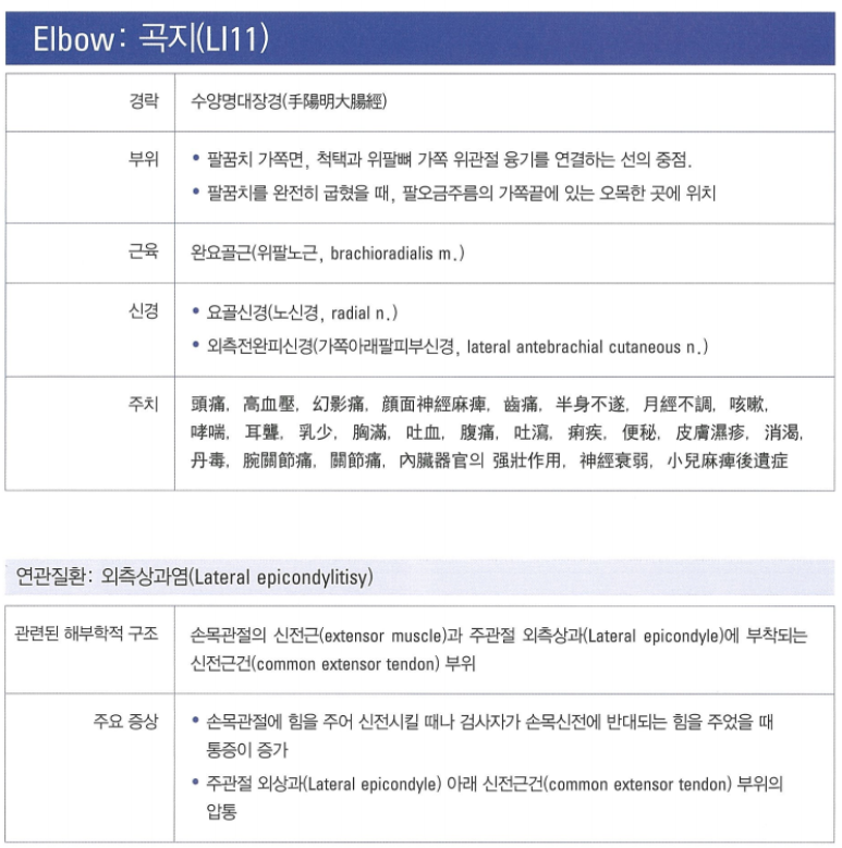 한의학에서 테니스 엘보우에 흔히 활용하는 혈 자리는