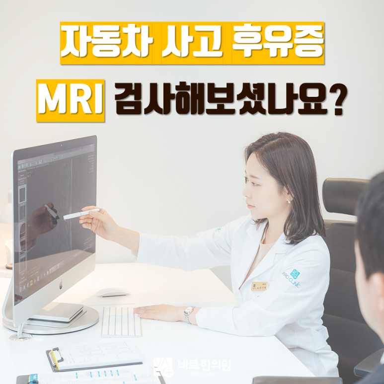 - 자동차 보험으로MRI 검사도 보장된다는 사실,알고 계신가요?한의원에서1-2주간 치료를 받았음에도차도가 없다면미세골절이나디스크 탈출증은 없는지MRI 검사를받아보는게 좋습니다.